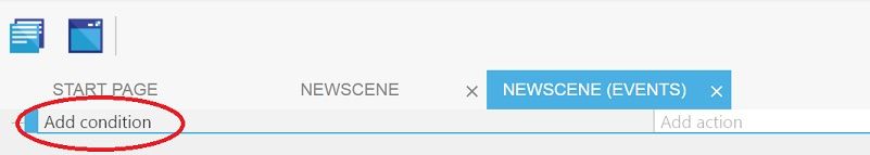 En lugar de adjuntar acciones a esta condición, ahora creará subeventos que suceden al comienzo de la escena.