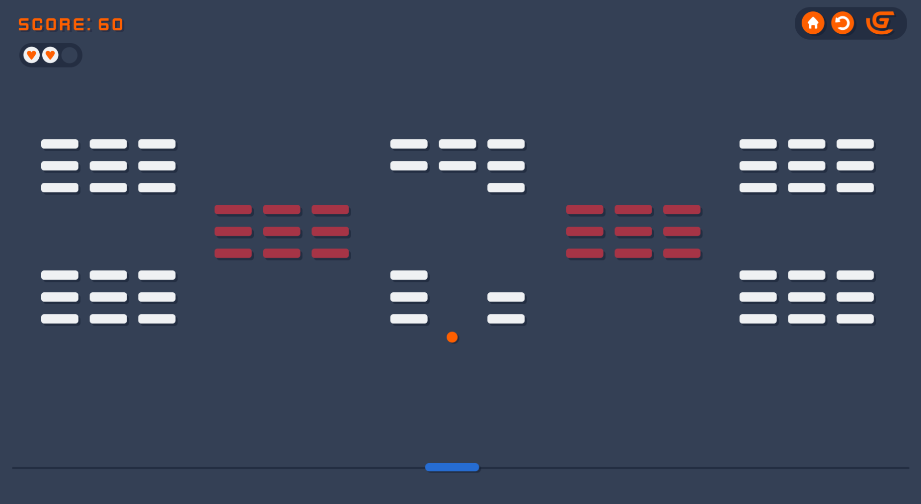 Con este tutorial, aprenderá algunas tareas básicas en GDevelop mientras crea un juego divertido. Al igual que el clásico juego de arcade Breakout, crearás una serie de ladrillos que se pueden romper con una pelota que rebota. El jugador controla la pelota con una paleta: una vez que la pelota cae, se acabó el juego.