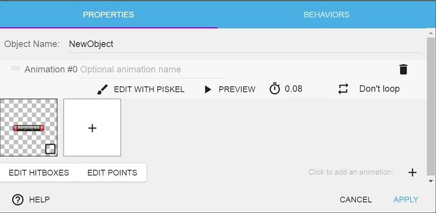 Los nombres de los objetos distinguen entre mayúsculas y minúsculas, al igual que otros elementos en GDevelop. Sea consistente en su nombre para evitar errores fáciles como escribir "Pala" cuando quiere decir "pala". Lo mismo ocurre con los nombres de animación como "Ejecutar" o "ejecutar". No importa qué convención de nomenclatura utilice, siempre que sea coherente.