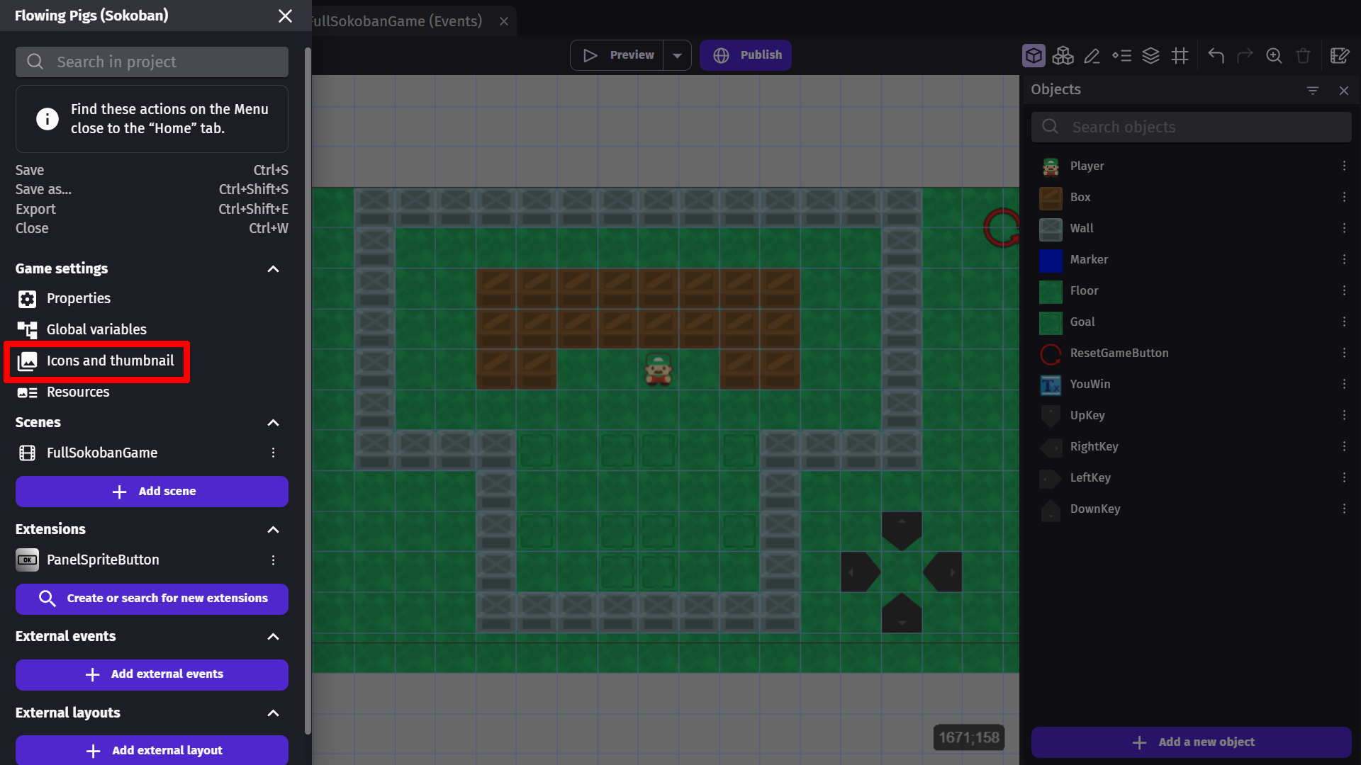 Set the icons and thumbnail of the game