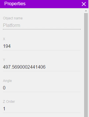 プロパティエディタを使用すると、選択したシーンオブジェクトのプロパティを変更できます。オブジェクトの位置、スケール、Zオーダーなどは、プロパティエディターを使用して変更できます。このページでオブジェクトのプロパティの詳細を読むことができます。