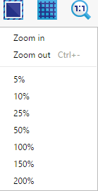 ズームボタンをクリックすると、シーンエディター内のズームレベルを変更できます。