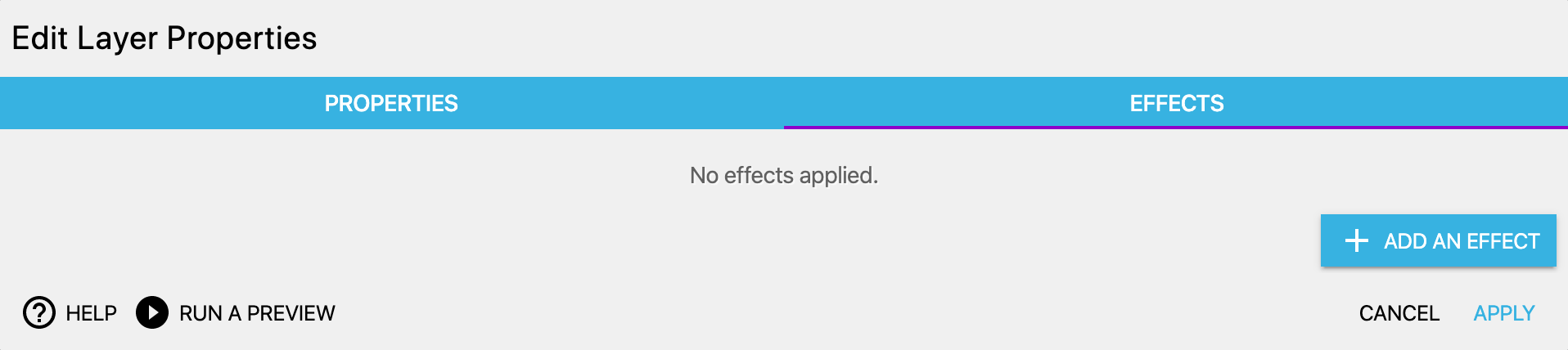 下のウィンドウには、レイヤーに適用されているエフェクトが表示されます。今はまだ何もありません。[エフェクトを追加]をクリックします。